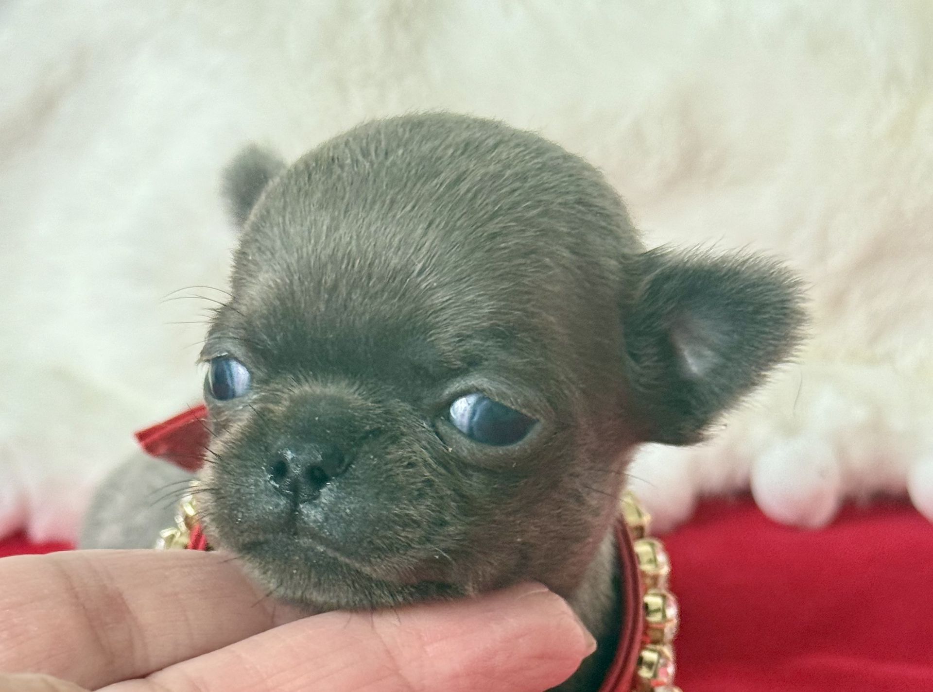 Magnifique prince de très petit gabarit, à la robe bleue, d’une couleur rare et recherchée. Son pelage délicat et soyeux, associé à son regard vif et tendre, en fait un compagnon d’exception.