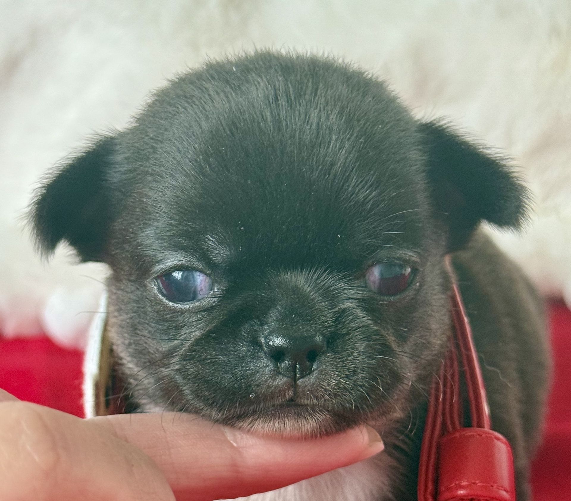 Élevé dans un environnement familial, il est manipulé et stimulé quotidiennement, ce qui lui garantit une excellente socialisation avec les humains comme avec les autres chiens. Affectueux et joueur, il apprécie autant les moments de tendresse que les instants d’exploration.